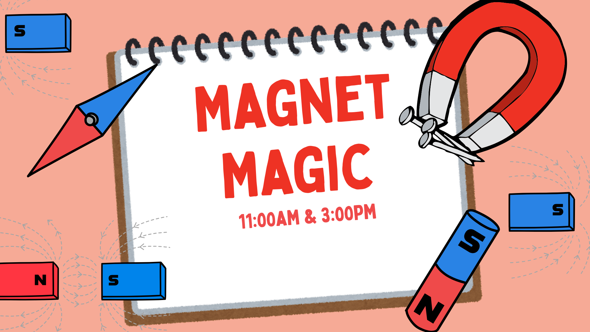 Museum magnet scavenger hunt! With your trusty magnet wand, explore the Museum and try to find things that are magnetic!