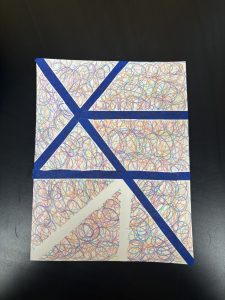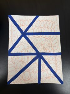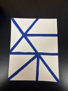 - Tape shapes across the paper. They can look however you’d like, but just know at the end of this activity, you’ll lift the tape to reveal the final product.